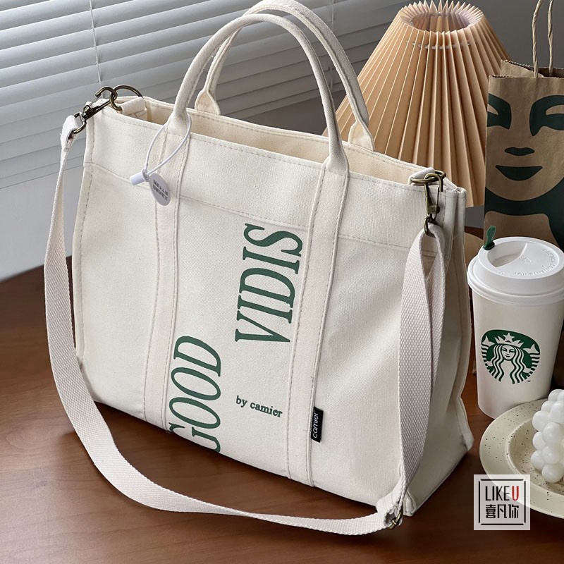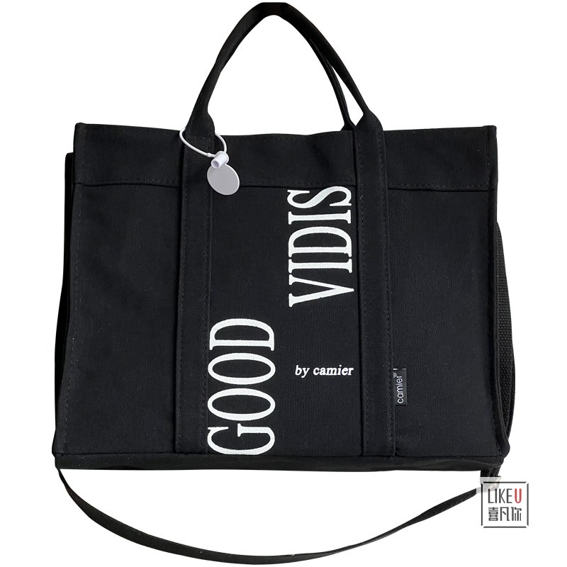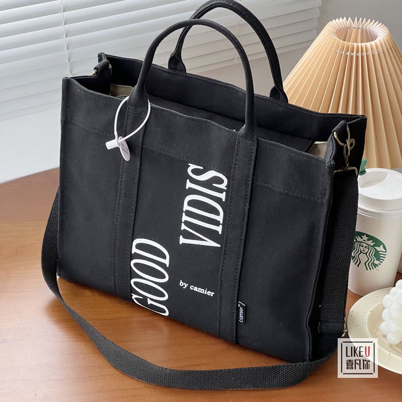 【Any 2 at $45.99】Original Design Japanese Letter Commuter Thickened Canvas Tote Bag Leisure Art Student Simple One Shoulder Handbag