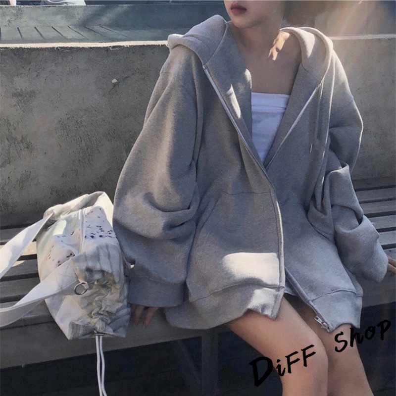 【DIFF】韓版寬鬆休閒內刷毛連帽外套 上衣 女裝 衣服 外套 薄外套 罩衫 防曬外套 長袖上衣【J32】