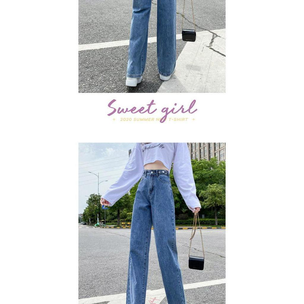 【OOTD批發】XS-2XL店長推薦!優選高腰闊腿牛仔褲 女大碼顯瘦寬鬆拖地長褲 可調節褲頭設計 高腰牛仔長褲 韓版