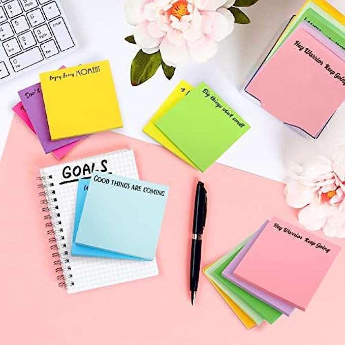 Inspirational design: the motivational sticky notepads are designed with inspiring quotes on the colorful memo notepads, including the sentences of hey warrior keep going, do your things, wake up with a purpose, good things are coming, you are enough, enjoy every moment, you are awesome, make yourself a priority, laugh more worry less, keep your head up, don't stop believing, little things make big, which can encourage you to keep active attitudes to your life
