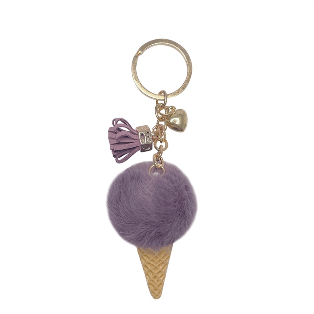 1pc Cute Mini Ice Cream Pom Pom Keyring With Tassel Fashion Student Fluffy Velvet Plush Keychain For Girls Bag Decoration Gift