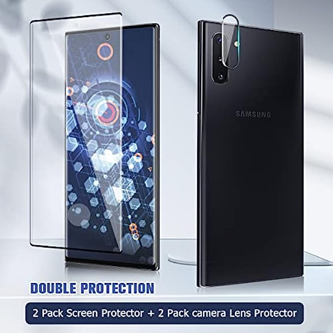 • 【Full Protective】: provide both Galaxy Note 10 Plus Tempered Glass screen protectors and Galaxy Note 10 Plus camera protectors, which will protect your phone from screen to camera all around. Offer full protection and double sercure.