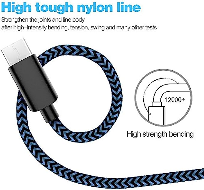 Nylon Braided, Extreme Durability: With a tested 12000+ bend lifespan, this USB-C to USB-A charging cable is far more dependable than others in its price range. Premium nylon braided Type C cable adds additional durability.