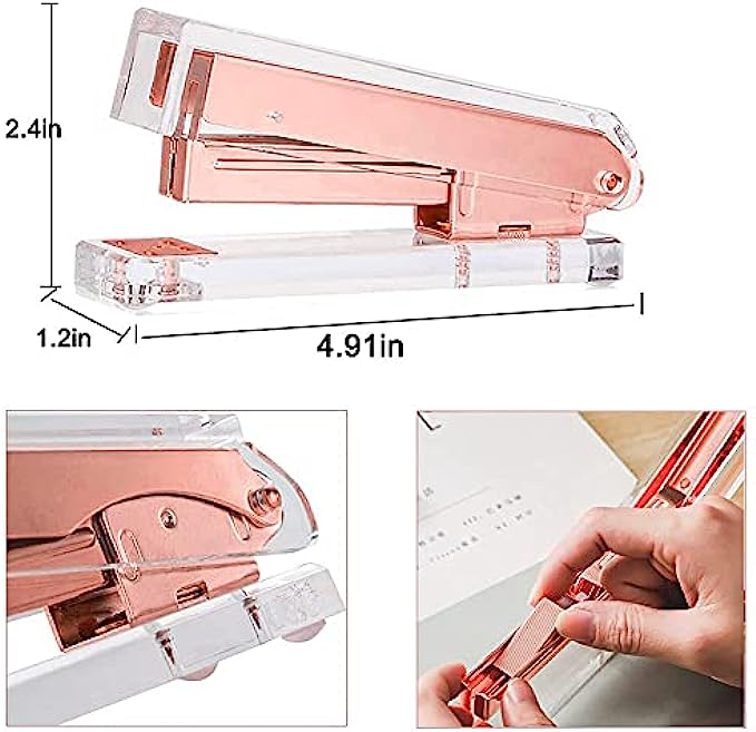【SUPERIOR FUNCTION 】The tape dispenser has a quality sharp sawtooth blade which enables you to tear the tape with ease. It weights enough allowing for single hand dispensing which helps elevate your work effectively. The stapler has a high quality stapling mechanism with solid interior, jam-free stapler with easy top-loading system can staple 20 pages easily. Inclued 1000 rosegold standard size staples. It will not fail to serve as one of your desktop essential.
