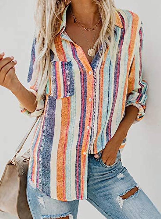 95% Polyester, 5% Spandex Imported Button closure Buttoned front to adjust v neck and comfortable to wear Features: Button down, V neck, Stripes, Color Block,Cuffed Sleeve Match well with jeans, pants, leggings and shorts Suit for daily wear, date, vacation, work, casual,office work If you have any question please feel free to contact us, we will give you the response within 24 hours. Thanks for your support