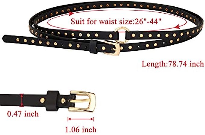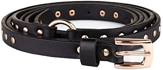 Ayliss Women Punk Leather Belt Skinny Studded Thin Waist Belt Casual Rivet Jean Pants Rock Metal Belts