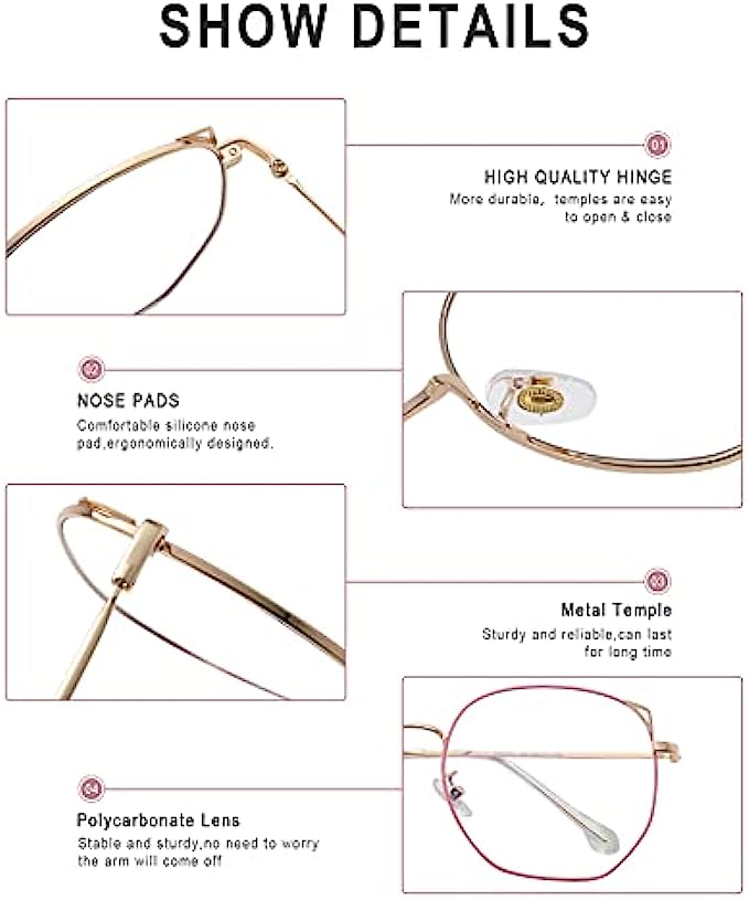 • ?【Fashionable cat ear design】 Our blue light blocking glasses have a fashionable retro cat ear design. The frame is made of high-quality metal materials. The first-class craftsmanship makes them have attractive slender lines and extremely light characteristics. The smooth metallic color brightens your appearance, and the metal frame is ultra-thin and flexible. It provides excellent anti-blue light protection while giving you a sense of fashion.