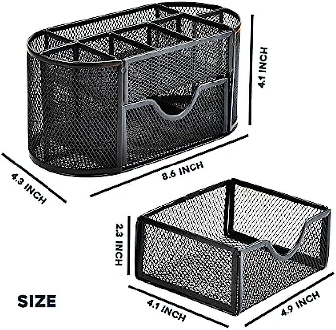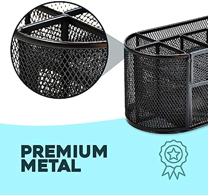 • Premium Quality- This mesh desktop caddy is made of high-quality metal and features rounded edges for increased safety. There is a flat bottom to avoid scratching to your desk or other surfaces
