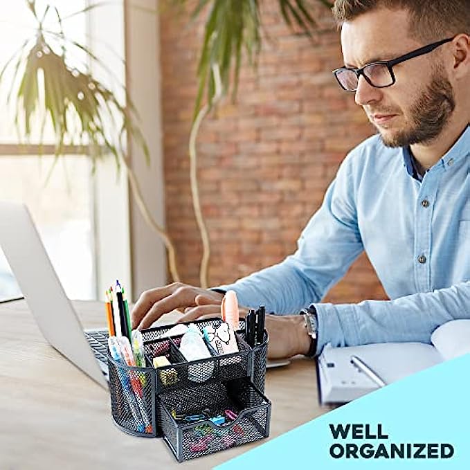 • No More Clutter!- Nothing can be more counter productive than a messy workspace, eliminate the clutter with a multi-compartment desktop caddy perfect for easy organization