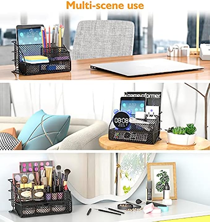 【Versatile Organizer】: Desktop organizer is suitable for organizing sundries, bathroom supplies, books, and other daily necessities. Place the organizer in any place such as office, desk, school, living room, etc. Clean up your living space and say goodbye to the mess.