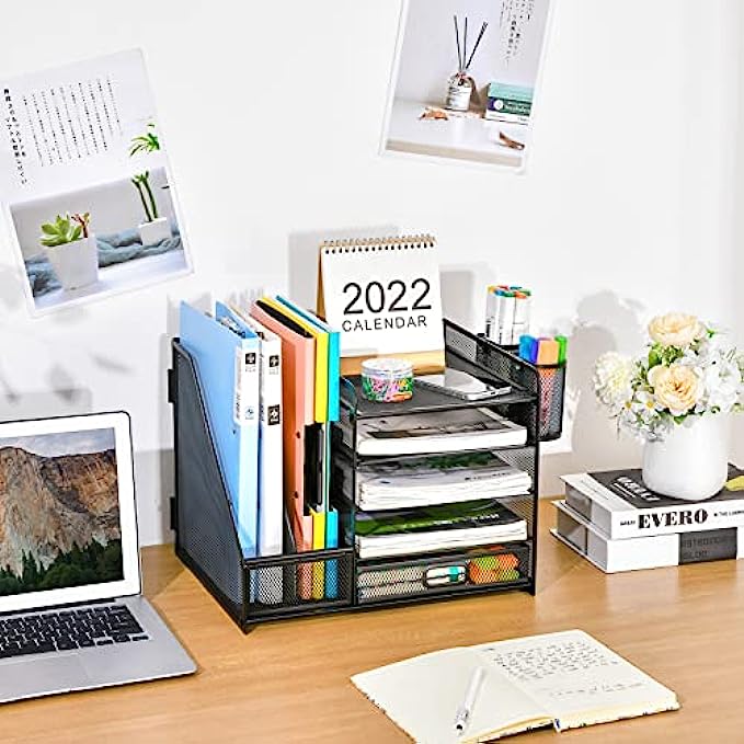 • ?【Space Saving】All office document folders would be organized by the vertical file holder. The paper tray organizer is very suitable for storing books, magazines, letters, and A4 paper. The drawer organizer and hanging pen holder enough accommodate all office supply accessories, such as pens, pencils, scissors, and so on. Perfect Size: 13.8*11*12inch.