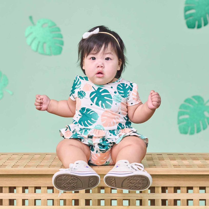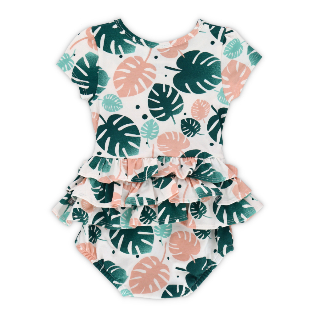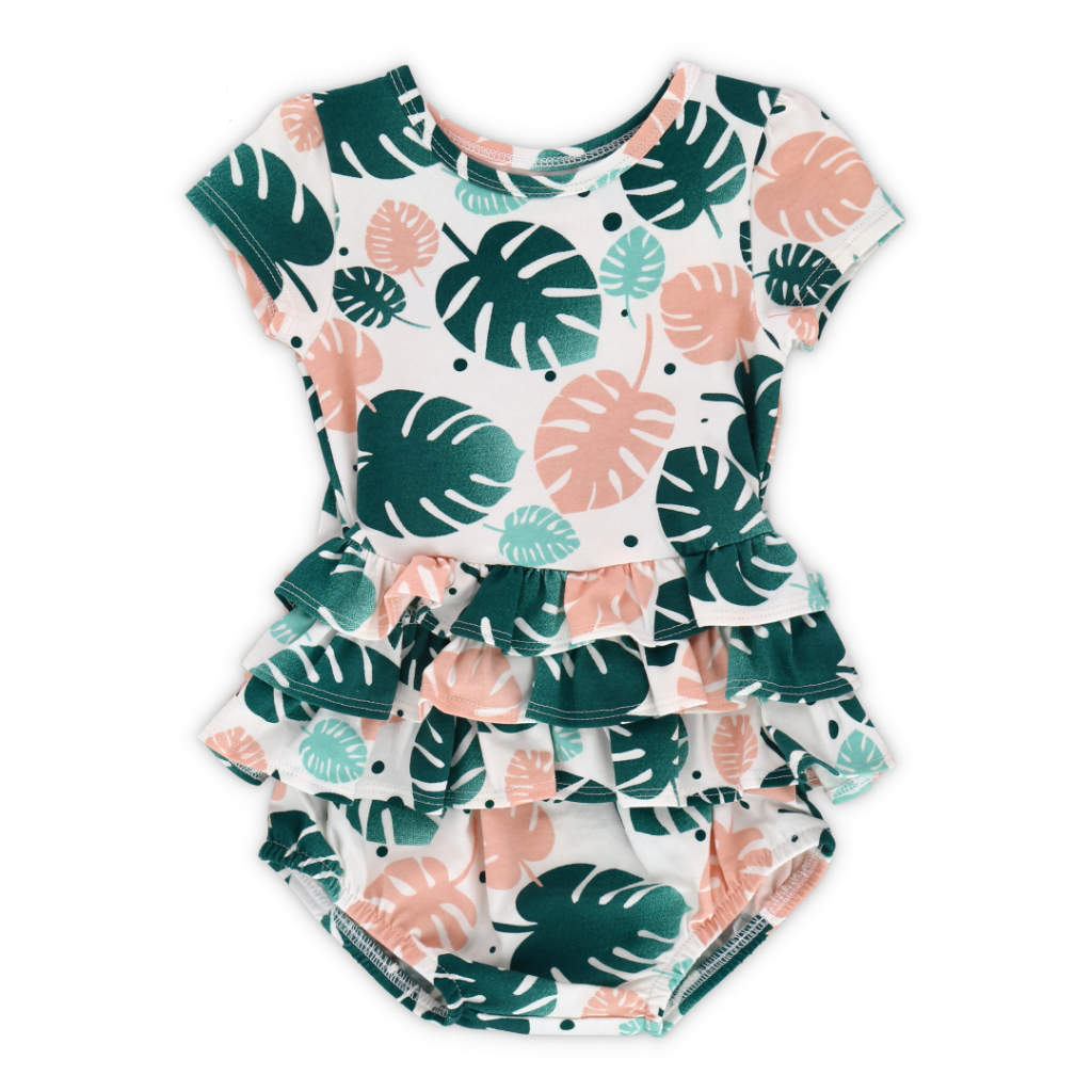 OETEO Tropical Land Baby Girl Easyeo Cap Sleeve Romper Dress (Green)