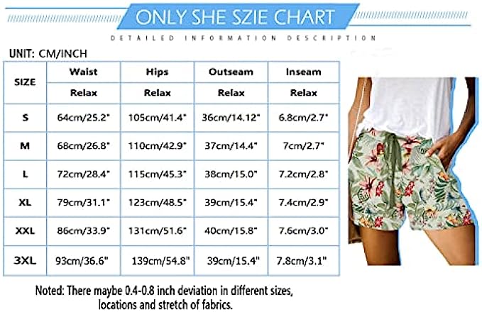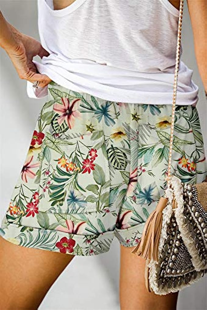 60% Polyester, 35% Cotton, 5% Other Fibers Imported Drawstring closure Machine Wash Women's Shorts:Solid: 35%Cotton+60%Polyester,Printed Shorts: 95%Polyester+5%Spandex,Lightweight fabric with a cozy elastic drawstring waist, keeps you soft all day. Mid-rise elastic waistband for stretchy fit, Pockets both sides and back, Adjustable waist drawstring.Wide and comfortable short legs can give you the perfect wearing experience. Comfy and skin-friendly fabric with chic style,this shorts is perfect to match with various blouses/Tops.A Must-Have Womens Shorts in Your Wardrobe.