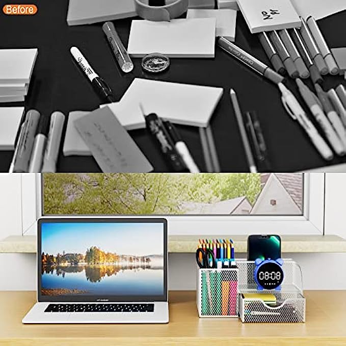 • 【RELEASE DESK ORGANIZATION AND STORAGE】Collect desk office supplies and accessories in one desk caddy organizer, making your desktop look clean and tidy. Also, it is nice to decorate your home, office, workspace, school, classroom, workshop, studio, college dorm room, etc. Also, it is very convenient to use, so it is an excellent gift for girls, boys, men, women, children, students, teachers, daughters, sons, friends, classmates, and colleagues