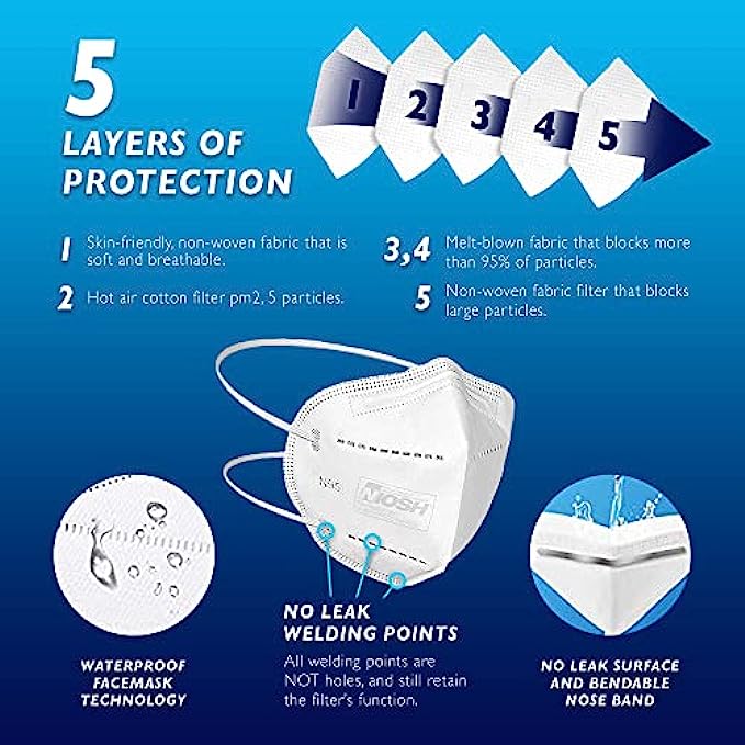 • ✅NIOSH Approved N95 Respirator Mask - (NIOSH Approval Number TC-84A-PH16)- N95 mask certified for protection against 95% filtration efficiency.-LAYER DESIGN with highly efficient filtering materials. Adjustable nose clip and ultrasonically welded headbands provide a tight and secure seal.