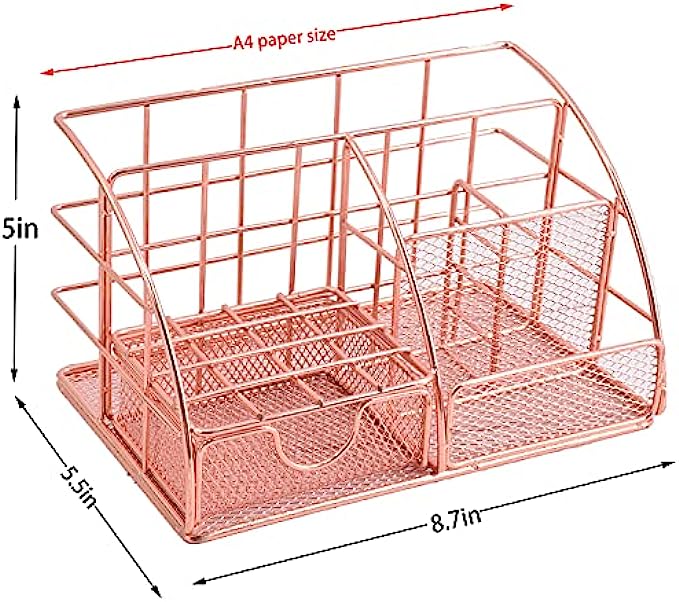 • Convenient And Practical: Desk organizer comes with rose metal finish design - elegant and noble. Mesh design concept - more fashionable and convenient, so that it can be used in different places, storing large or small stationery and toiletries at any time. , the desk organizer is also a fashionable gift.