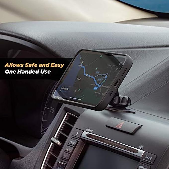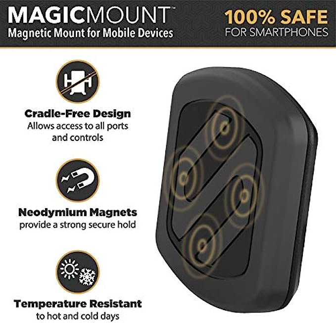 • Magnetic Phone Holder - Comes with powerful Rare-Earth neodymium phone magnets that provide a secure grip to your iPhone, Android or Tablet. 100% mobile device safe. Simply stick the car mount magnet to the back of your phone case for a secure magnet hold.