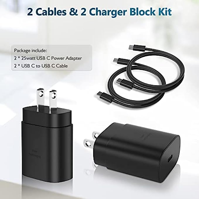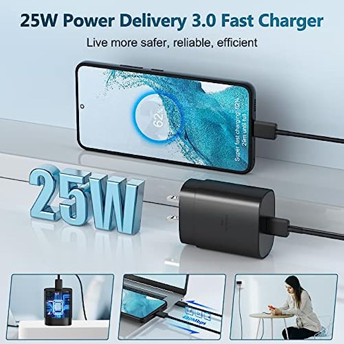 USB C Charger, 25W Super Fast Charger Type C Wall Charger Block with 5ft Android Phone Charger Cable for Samsung Galaxy S22/S22 Ultra/S22+/S21/S21 Ultra/S21+/S20/Note 10/Note 20/Z Fold3/Z Flip3