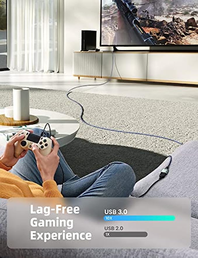 10FT PERFECT LENGTH: With the perfect 10ft length, you can play the game freely ,or lie on the sofa to use your devices for video while you are charging.What's more,you can also extend your surveillance camera (please make sure the camera interface is USB A port). Perfect Length for your easy life-use.