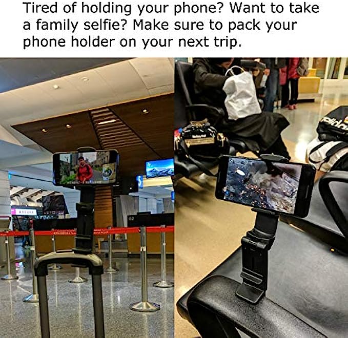 ✈️ Strong clamp to mount your phone to table, luggage handle, gym equipments or any objects up to 1.5 inch wide.