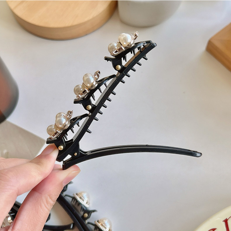 Elegant Temperament Double-Layer Braided Hair Clip Broken Hair Forehead Bangs Tidy-up Handy Tool Butterfly Pearl Side