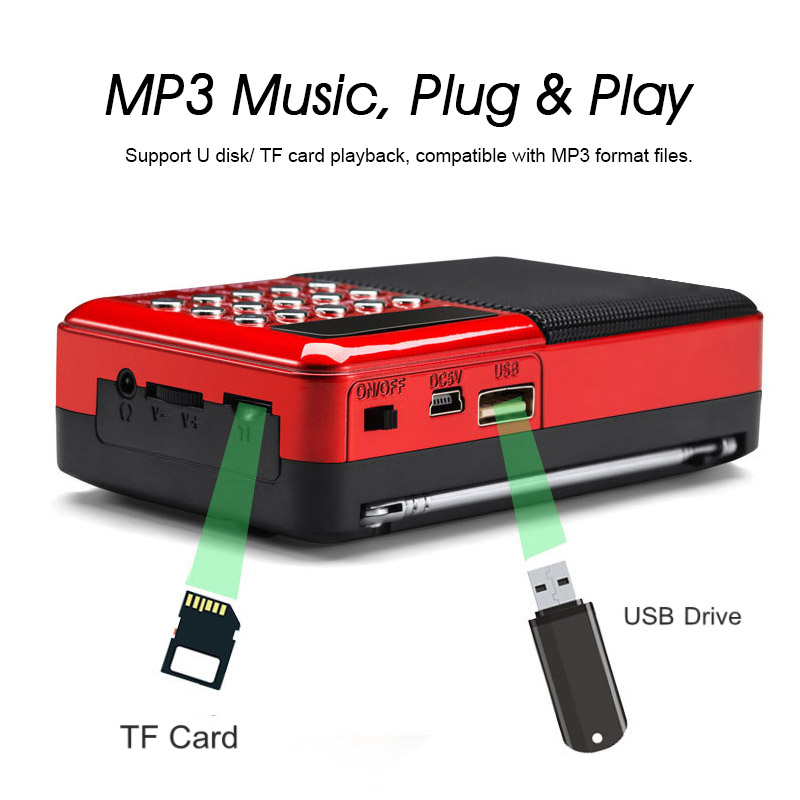 FM Radio Portable Mini Radio AM | FM | USB | TF | MP3 | Player | Speaker | Light-Weight 收音机