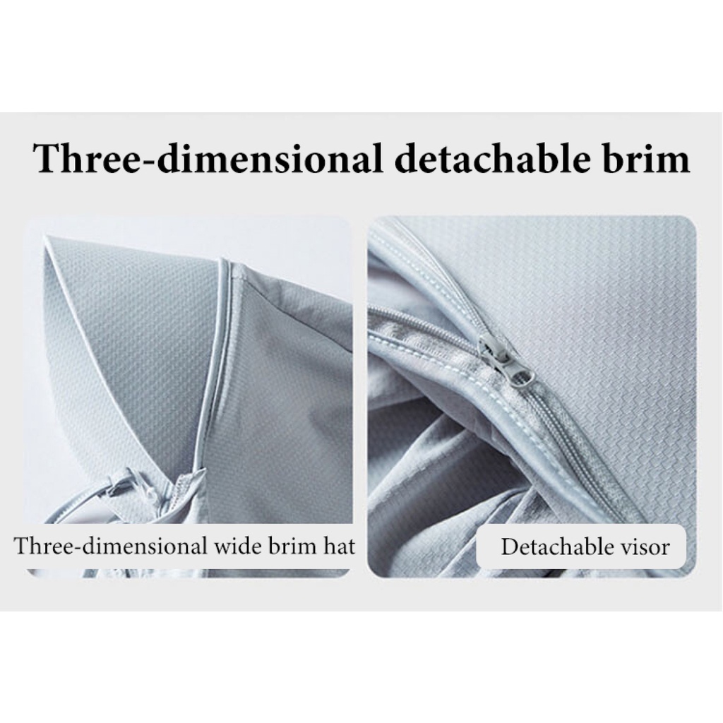 Pleased with the colour and the thin material. Intrique by the zipperable brim; very practical and useful. Hope it is authentic 50+ UPF protection as labelled on bottom left corner.