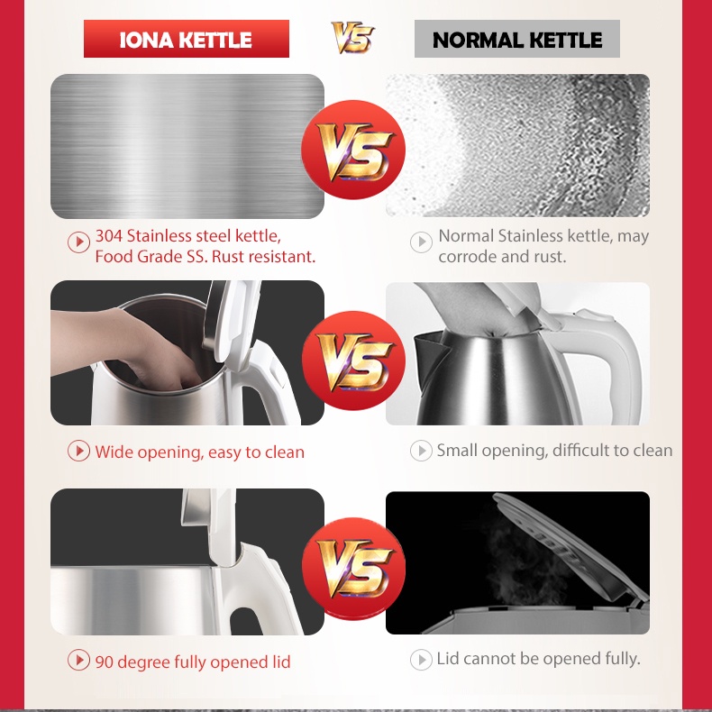 IONA 1.8L Electric Kettle Stainless Steel Water Boiler | Kettl Electric 热水壶 熱水壶 - GLK1806