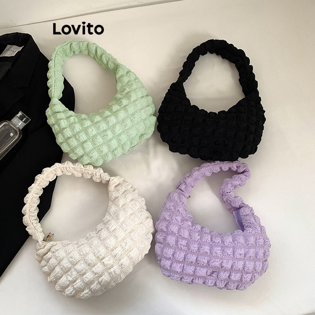 Lovito Casual Plain Basic Small Shoulder Bag for Women L69AD089 (White/Purple/Green/Black)