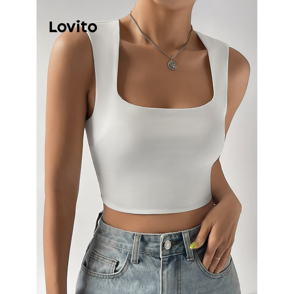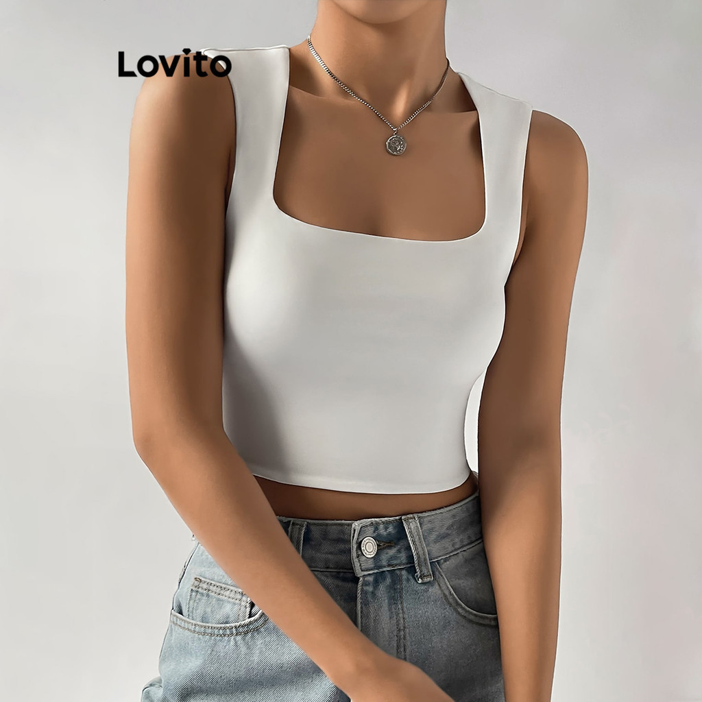 Lovito Elegant Plain Basic Tank Top for Women L68ED064 (Multi-color)