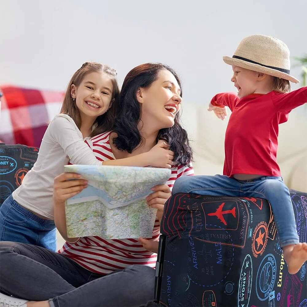 Colour:black stamp xl Material Quality:stretchable good I love it. This is my 2nd purchase , altogether -4 pcs . Its stretchable, fit well & Easy to Identify : A suitcase cover can make our bag in safe , even to reduce the likelihood of mix-ups with other travelers' bags.e best part , Covers come in various colors and designs, allowing us to personalize our luggage and express our own style. Its worth , e covers are lightweight and easy to pack, making them a convenient addition to our travel gear.Thank you.