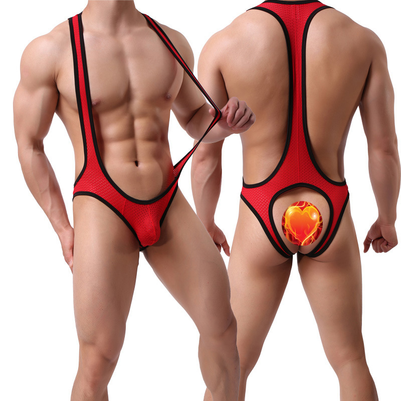 Men Jockstrap Leotard Elastic Mesh Underwear Jumpsuits Wrestling Singlet Bodysuit