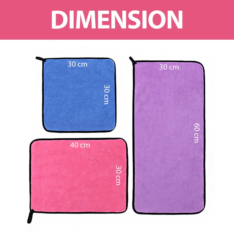 Quality:good Performance:good Suitability:good I buy 30cm×30cm. Last time I buy 40cm×60cm. Quite big. This is my fourth order. Very good. I use it to clean my kitchen table top, also utensil...etc. rub the table also...i'm satisfied use this fibre cloth...very reccomended.