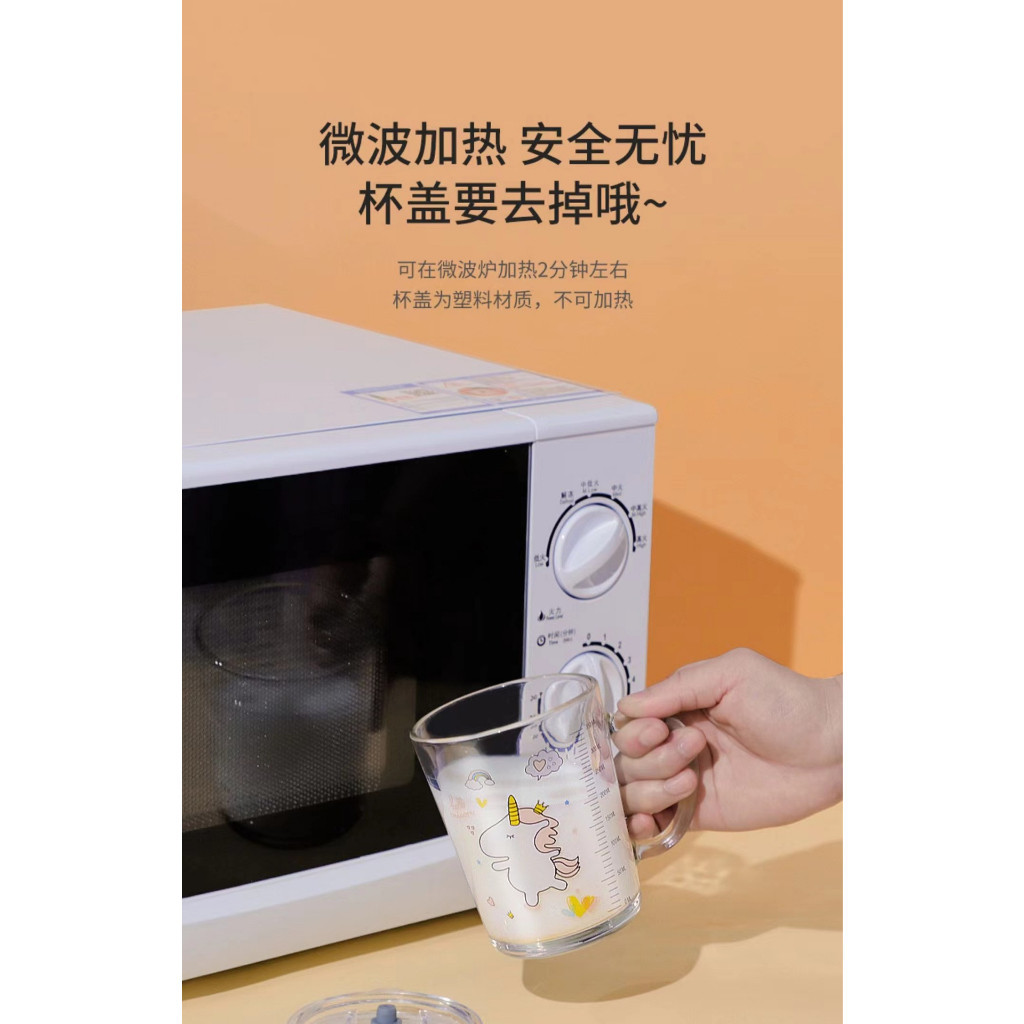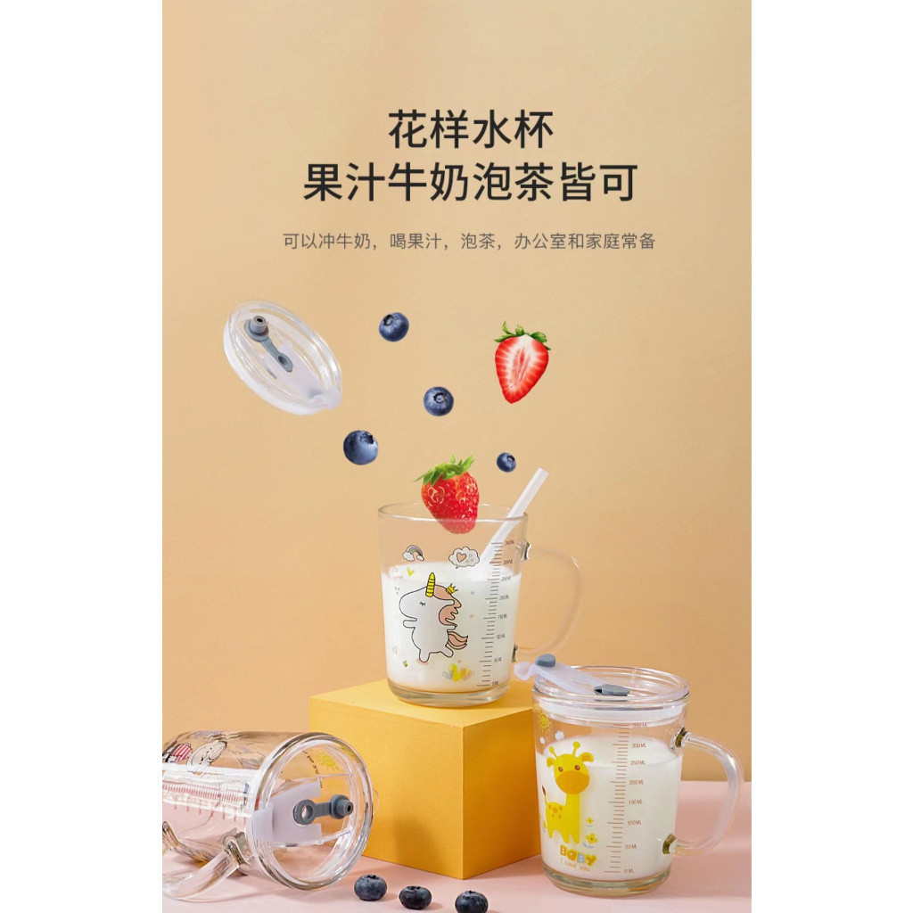 Mug? 400ml Children's Breakfast Glass Mug With Straw Scale Cartoon Animal Unicorn Milk cup with Handle Glass Bottle