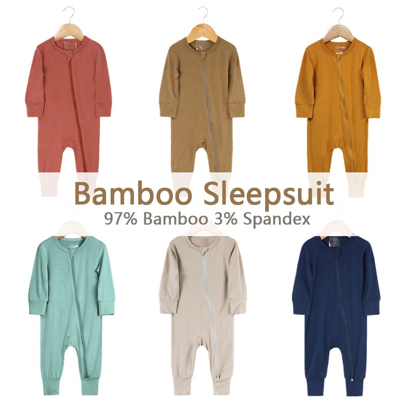 Newborn Bamboo Baby Sleepsuit Long Sleeve Two Way Zipper Baby Rompers