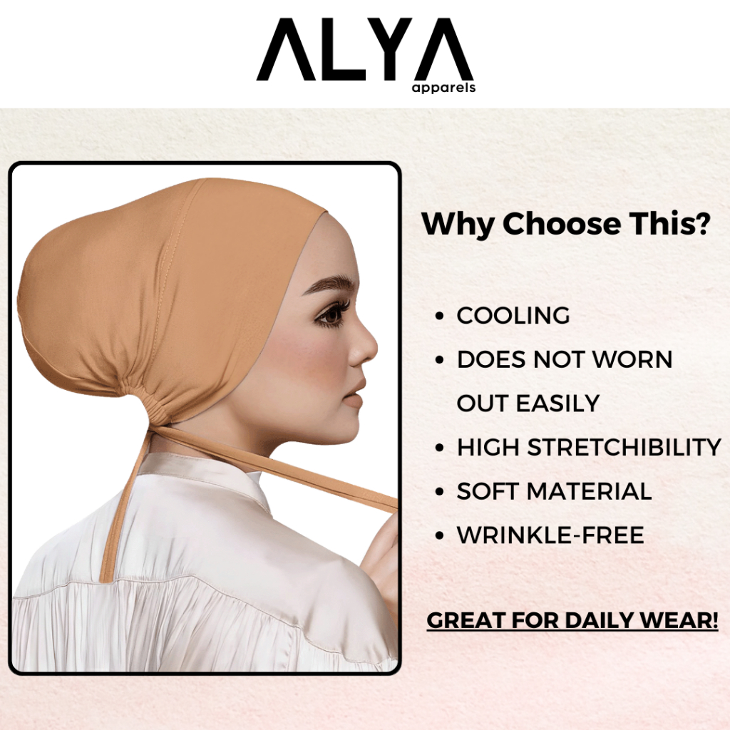 Premium Inner Tie Back Hijab ( Alya Apparels / Adjustable / Tie Up / Breathable / Inner Cap / Shawl / Ciput / Innera )