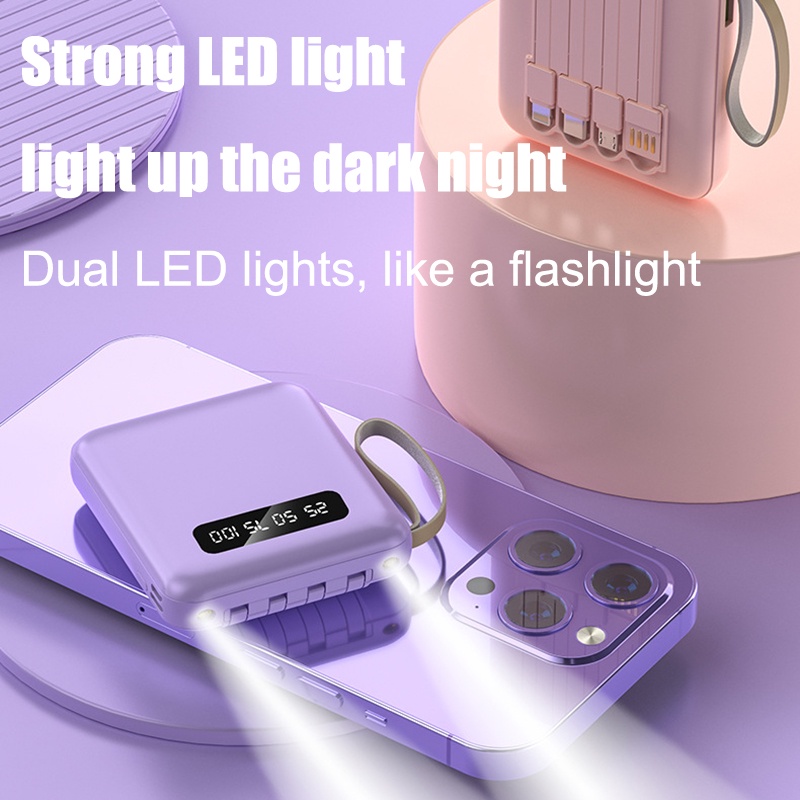 [SG Ready Stock] Mini Fast Charging Power Bank With Cable 5000mAh Portable Charger Small Powerbank For iPhone