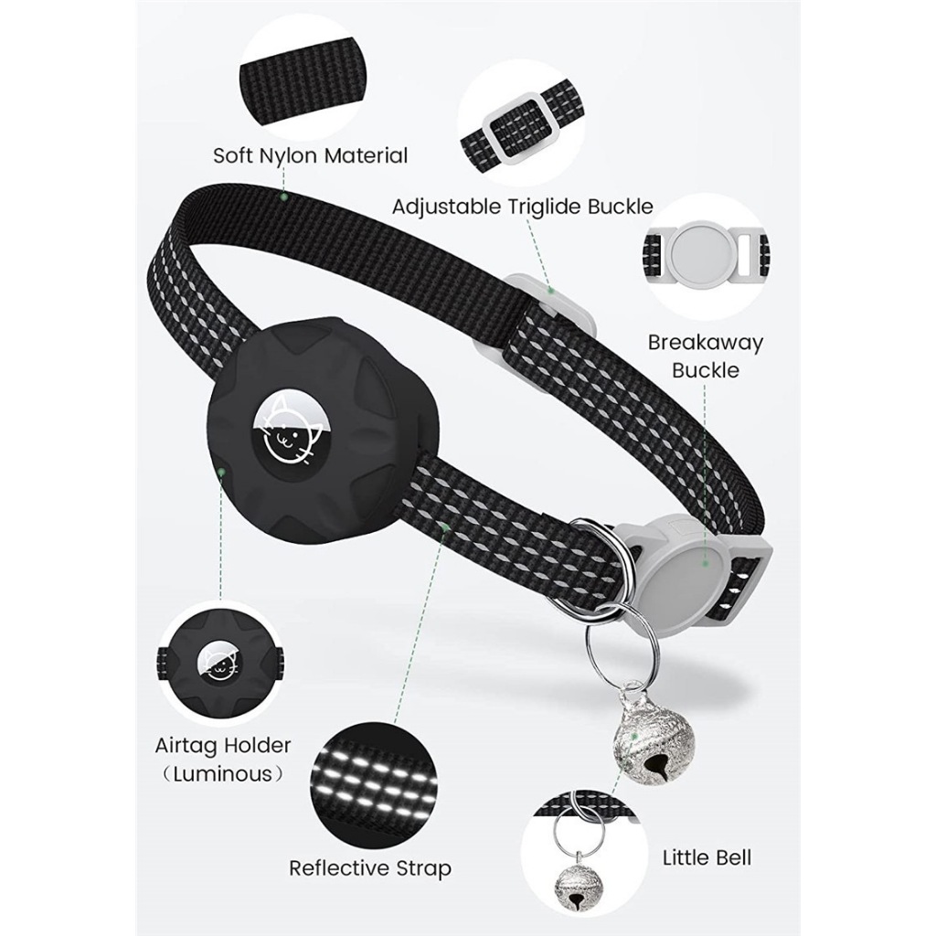 SG Shipment Cat Collar, Reflective Bell and Silicone Waterproof Airtag Holder Case Compatible with Apple , Breakaway Safety Buckle Collar for Kitten Puppy