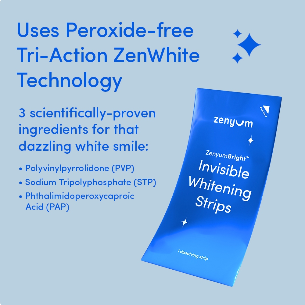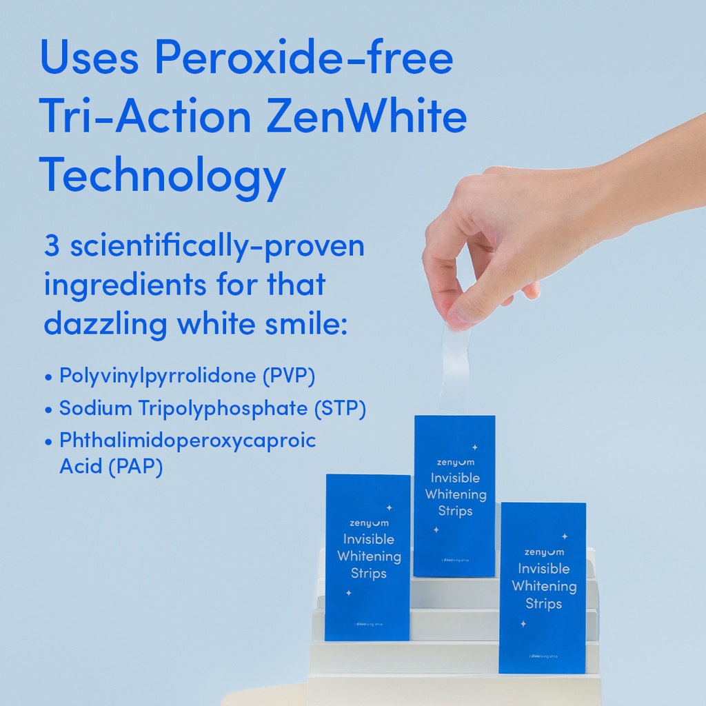 Formulation:Tri-action ZenWhite technology Suitability:on the go application with no mess, no rinse formula Performance:great. Directions are clear and easy to follow. Causes no sensitivity. However it sticks to the lips rather easily. Did notice a difference after several days.